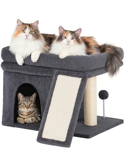 Aechonow Cat Tree Tower for Large Adult Cats, 50 * 40cm Big Perch Bed,Spacious Condo House for Indoor Kitten, Sisal Scratching Post, Dark Gray