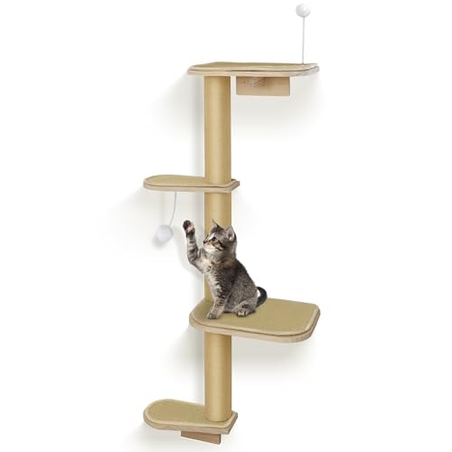 125cm Wall-Mounted Cat Tree, 4 Tier Kitten Scratching Post, Cat Wall Furniture with Sisal Pad Platform, Large Cats Kittens Shelves Suitable for Climb, Scratch and Play