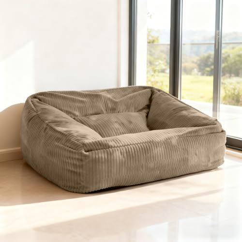 KBZSlyn Beanbag Chair Cover for Adults(No Filler), Removable Washable Breathable Corduroy Slipcover, Replacement Cover for Large Bean Bag Chairs(Beige,Sofa)