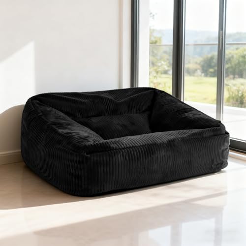 KBZSlyn Beanbag Chair Cover for Adults(No Filler), Removable Washable Breathable Corduroy Slipcover, Replacement Cover for Large Bean Bag Chairs(Black,Sofa)
