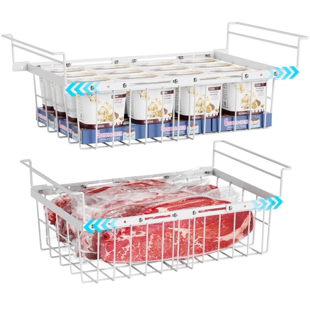 iSPECLE 2 Pack Hanging Freezer Baskets - Fit 283 to 566L Depp Freezers, Expandable Large Chest Freezer Baskets Add Space Easy Slide to Get Bottom