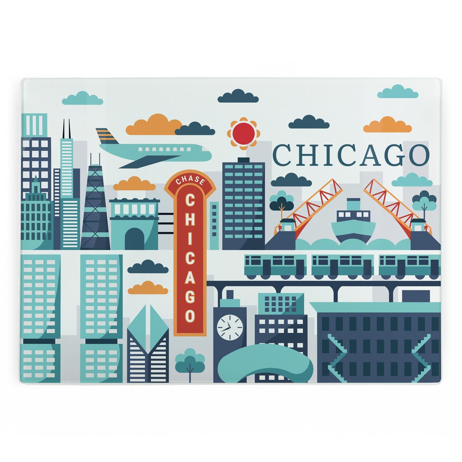 Chicago Glass Worktop Saver - Holiday Travel Large Chopping/Cutting Board Gift