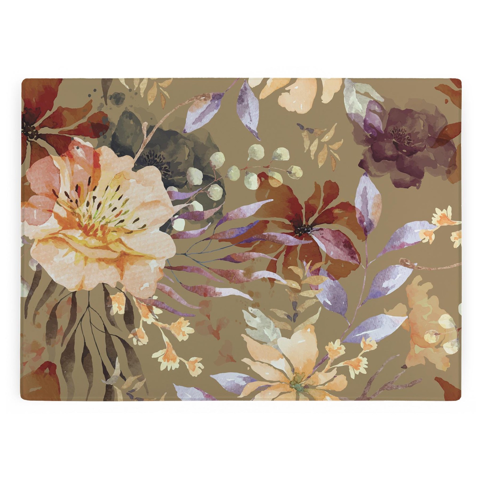 Rustic Flowers Glass Worktop Saver - Large Kitchen Cutting/Chopping Board Gift