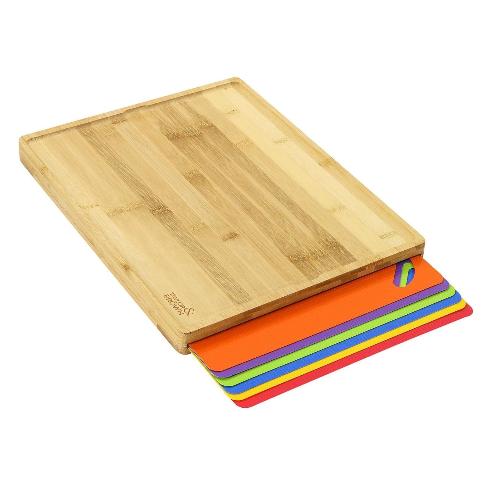 Large Bamboo Chopping Board Wood with 6 Color Coded Flexible Cutting Mats Set