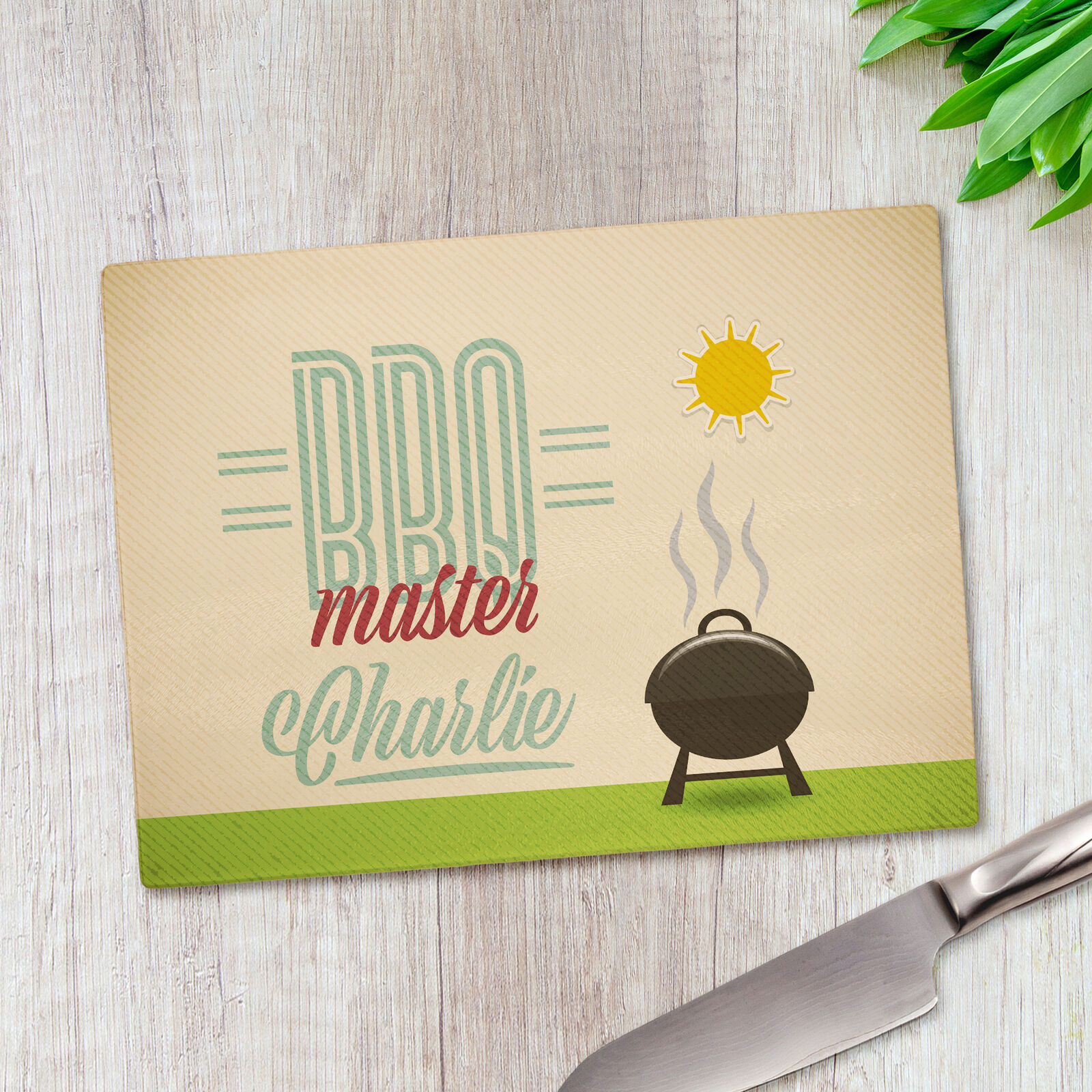 Personalised BBQ Master Any Name Glass Large Worktop Saver Chopping Board