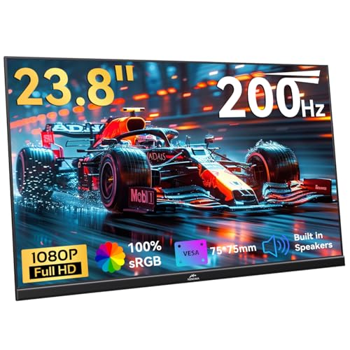 Kenowa 23.8” USB-C Portable Monitor IPS Screen 100% sRGB 1080p 200Hz FreeSync Large Gaming Monitor External Display Dual Speakers&VESA with HDMI Type-C for PC Laptop Mac PS4