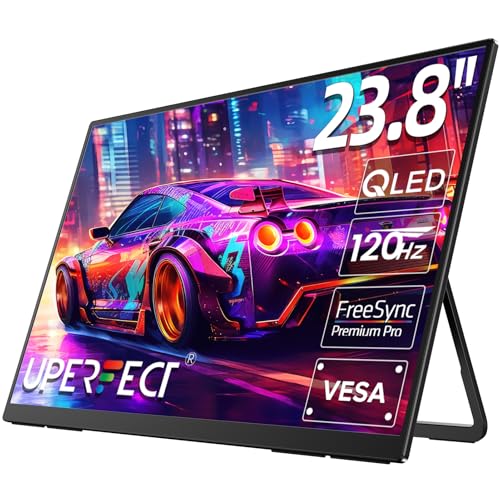 UPERFECT QLED 24” Portable Monitor 120Hz 125% sRGB 400Nits w/Kickstand & VESA, FreeSync HDR Large Gaming Screen with HDMI USB C for Work & Gaming, 3 Narrow Edge External Matte Display for PC Laptop