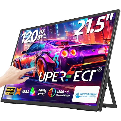 UPERFECT 21.5” Touchscreen 120Hz Portable Monitor w/Kickstand & VESA, FreeSync IPS HDR Large Portable Gaming Monitor HDMI USB C, 3 Narrow Edge External Display w/Fully Metal Unibody for PC Laptop