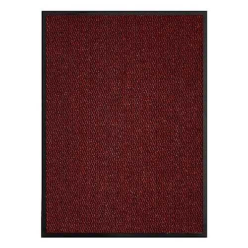 TrendMakers Door Mat Indoor Outdoor Floor Mat Non Slip Hard Wearing Barrier Mat. PVC Edged Heavy Duty Large Kitchen Rubber Doormat Home Office - Wine Red/Black - 60x80cm