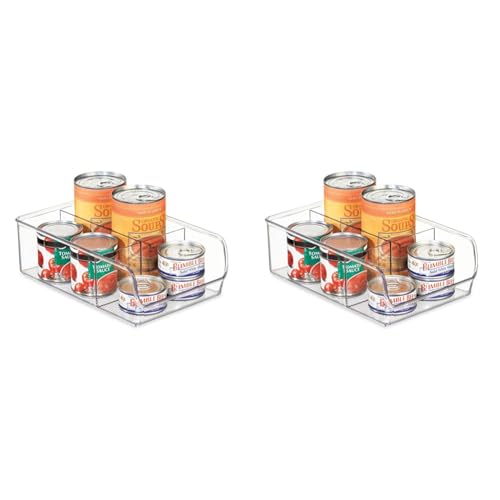 iDesign Storage Box with 3 Compartments, Large Plastic Kitchen Organiser for Fridge and Pantry, Fridge Storage Bin for Food, Drinks and Condiments, Clear (Pack of 2)