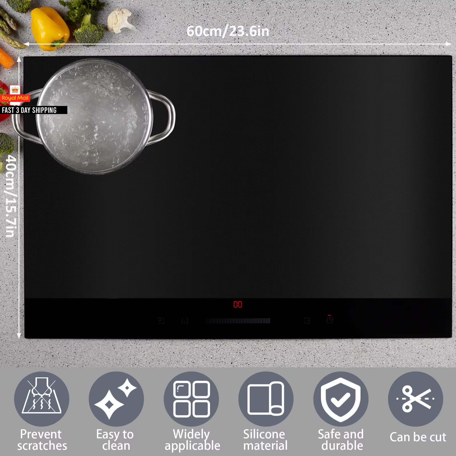 Large Silicone Hob Protector Mat, Cover for Induction Stove, Electric Cooker Scr