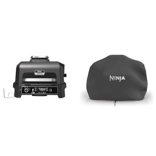 Ninja Woodfire Pro XL Electric BBQ Grill & Smoker with Digital Probe, Large 4-in-1 Outdoor & Woodfire XL Grill Cover, Anti-Fade Weather Resistant BBQ Cover with Drawstring