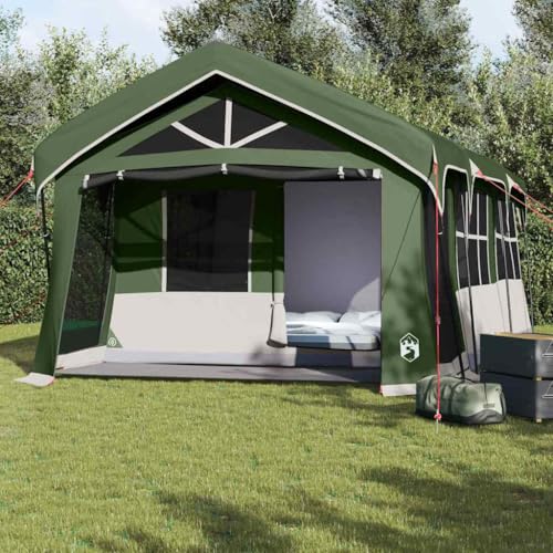 Camping Tent for 8 People, Green, Waterproof, Large Outdoor Family Tent with E-Connection, Portable, Robust 185T Polyester with PU Coating, 487 x 305 x 182 cm for Adventure
