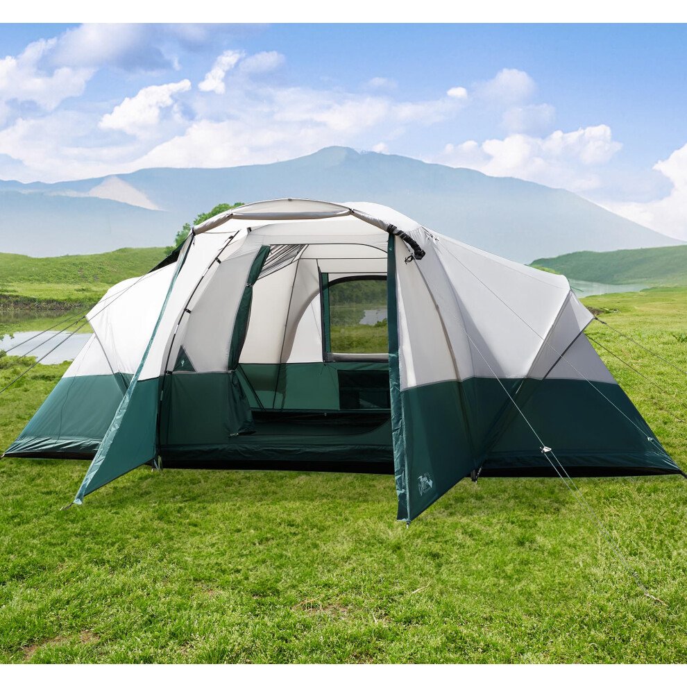 Large Family Camping Tent for 8-12 People, 2 Rooms with Living Area, Waterproof, Windproof, with Canopy Awning and Mosquito Netting