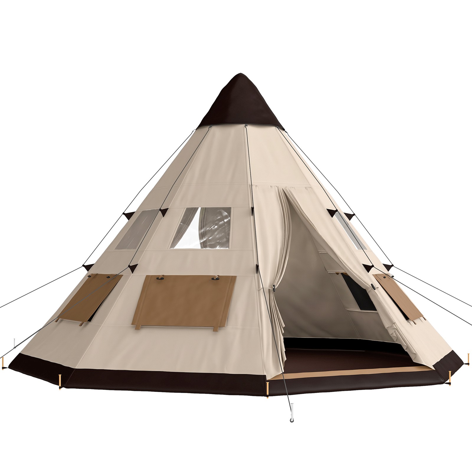 Outsunny 6-7 Person Large Family Camping Tent with Carry Bag, Grey â 2.6m High Tipi, Pre-Attached Rust-Resistant Poles, 8 Windows (A20-136GN)