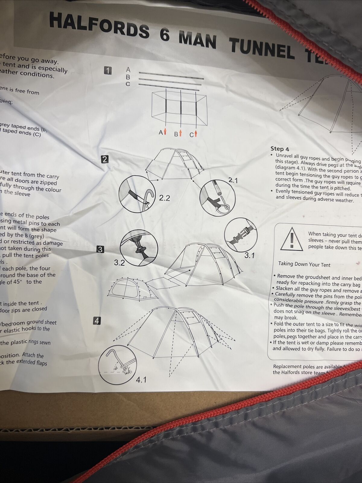 Halfords 6 Person Tunnel Tent 2 rooms Large Family Tent with porch & Carry case