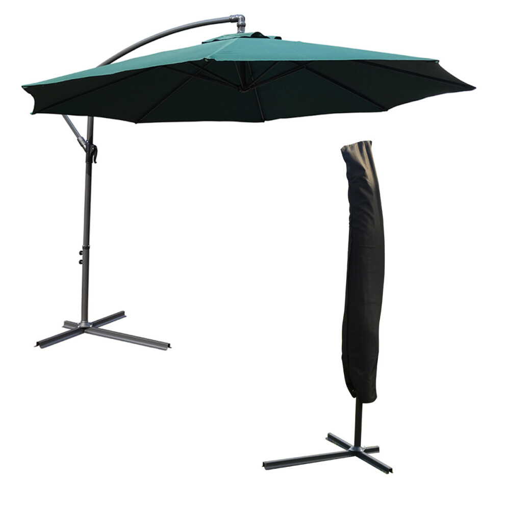KCT 3m Large Green Garden Cantilever Parasol with Protective Cover