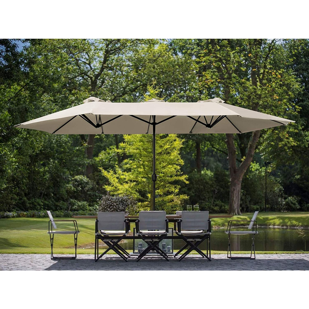 Extra Large Double-Sided Garden Parasol 4.5m x 2.7m with Beige Canopy