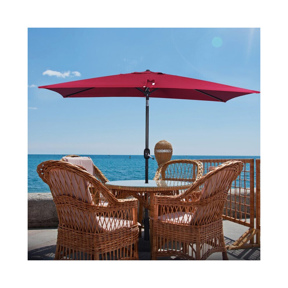 (Wine Red) 2x3M Large Square Garden Parasol Outdoor Beach Umbrella Patio Sun Shade Crank Tilt