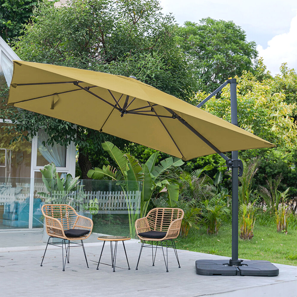 The Fellie 3 * 3M Large 360° Rotation Garden Parasol with 4-Piece Base(60L), Outdoor Cantilever Hanging Sun Shade Canopy Adjustable Angle Patio Banana Umbrella, 30+ UV Protection, Light Grey