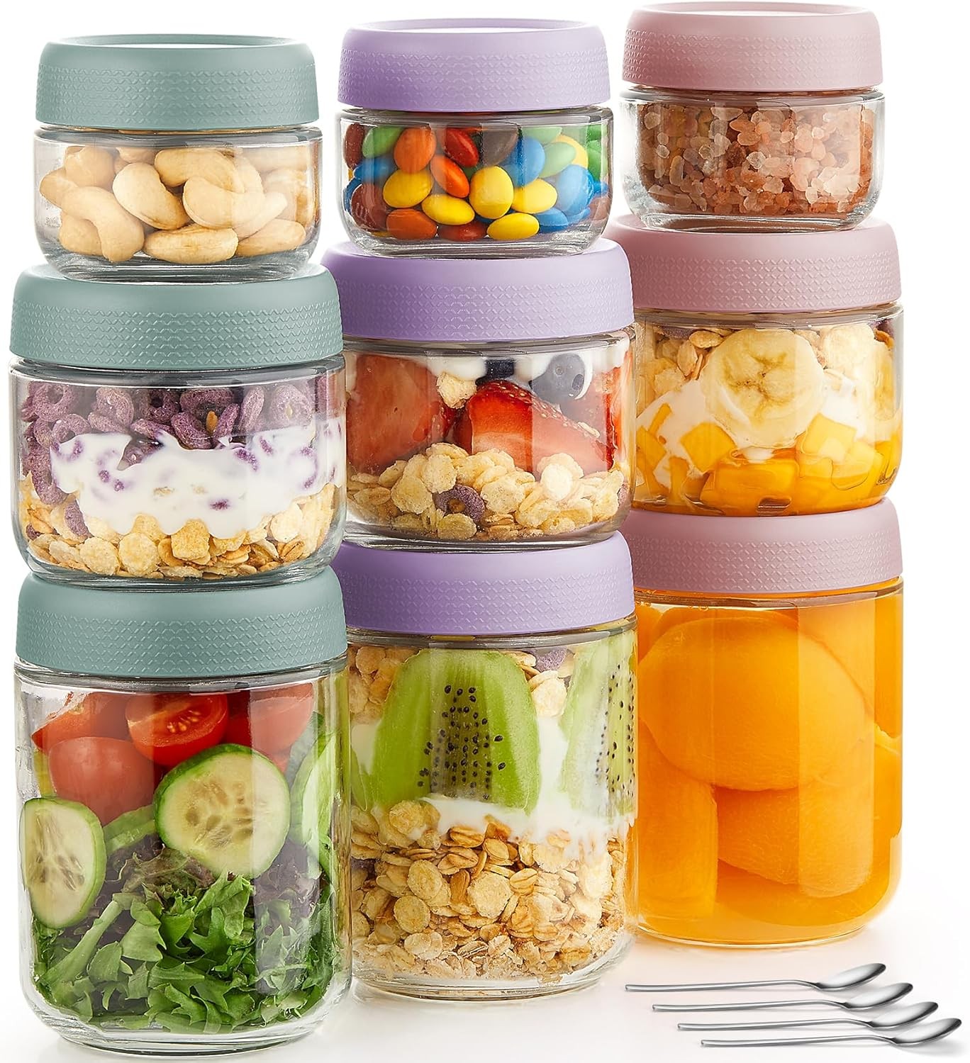 9 Pack Overnight Oats Containers with Lids, Large & Small Glass Mason Jars...