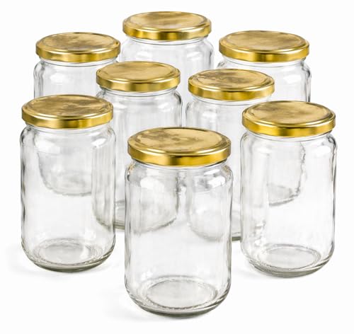 DIAH DO IT AT HOME 24 Pack 720ml Glass Jam Jars with Gold Twist-Off Lids - Large Canning Jars for DIY Pickles, Chutney, Honey & Preserves - Airtight Food Grade Storage Containers (Set of 24)