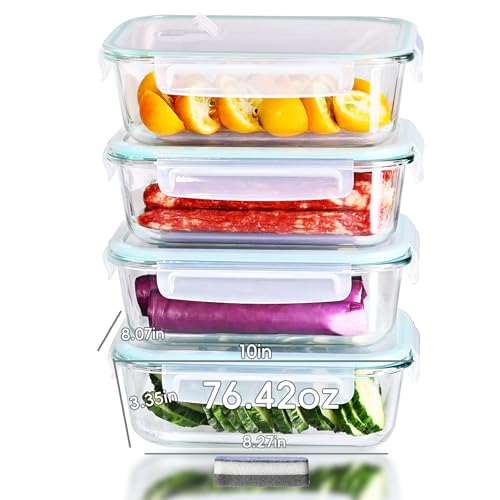 Magnificent 4-Pack Large glass food storage containers with Lids | 2700ml | 226