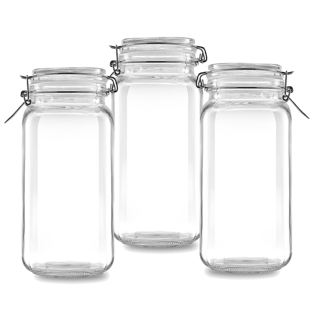 ComSaf Airtight Glass Storage Jar with Lid 1500ml Clip Top Jars Set of 3, Glass Large Storage Containers with Lids, Round Preserving Jar for Pickling,