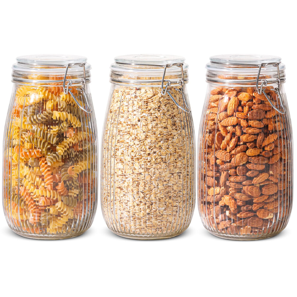 ComSaf Airtight Glass Storage Jar with Lid 1500ml Clip Top Jars Set of 3, Glass Large Storage Containers with Lids, Round Preserving Jar for Pickling, Canning, Pasta, Flour, Cereal, Dry Foods