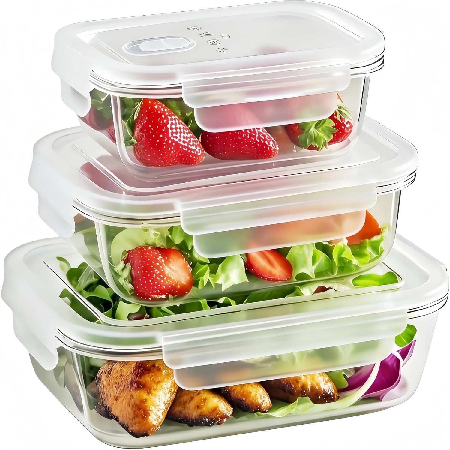3 Piece Airtight Glass Food Storage Containers with Lids, Large Capacity Food C