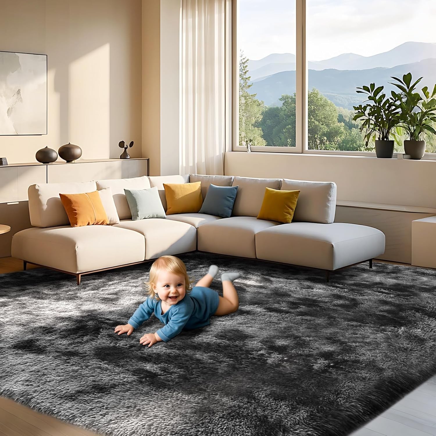 Untimaty Rugs Living Room - 120x180cm Dark Grey Large Rug for Living Room - Ultra Soft Fluffy Shaggy Rugs for Bedroom, Indoor Nursery Carpets for Kids Room Home Decor, Non Shedding, Anti-Slip Backing