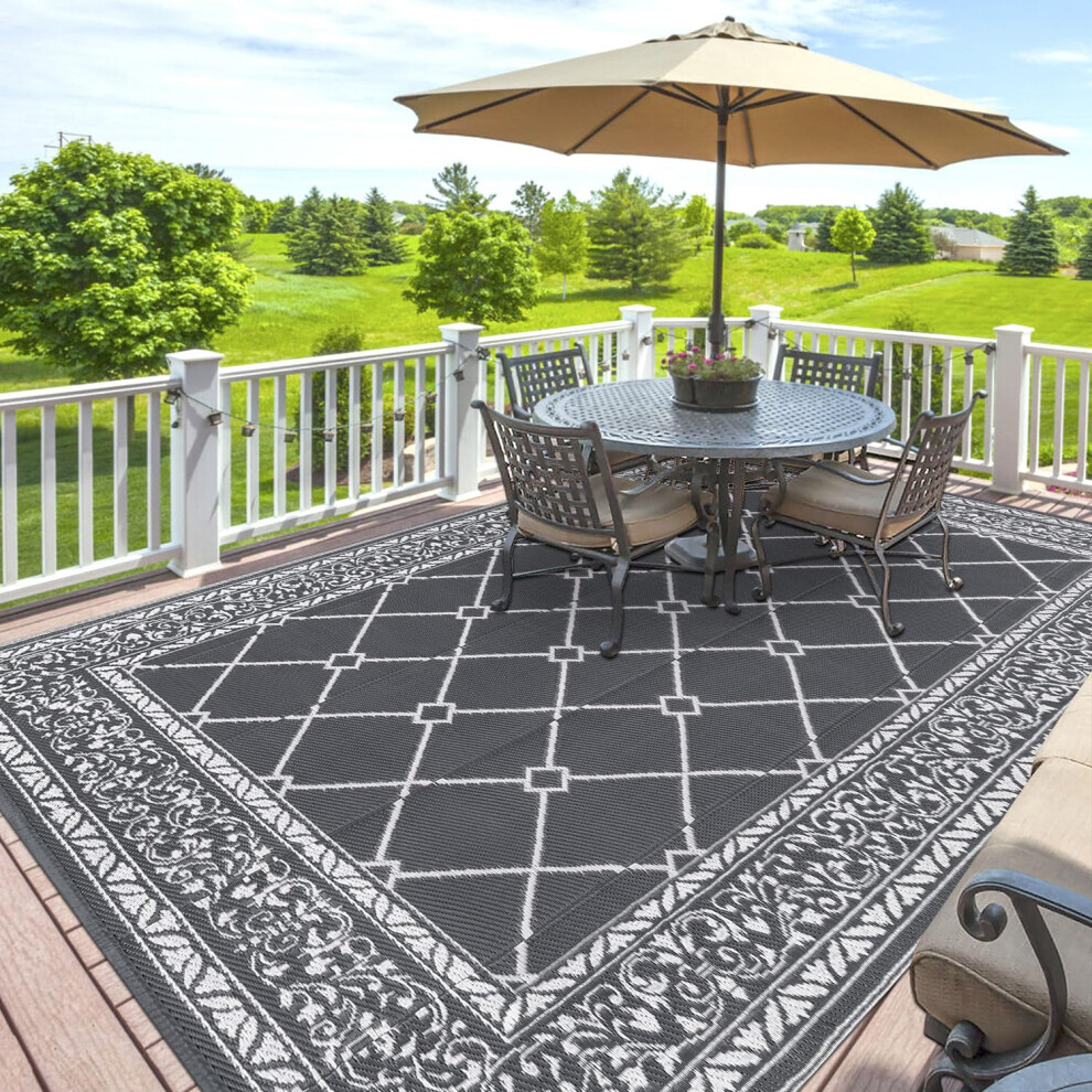 SHACOS Large Outdoor Rug Grey Waterproof 180x270 cm Reversible Plastic Garden Mat UV Resistant Camping Rugs Lightweight Outdoor Rugs for Patios