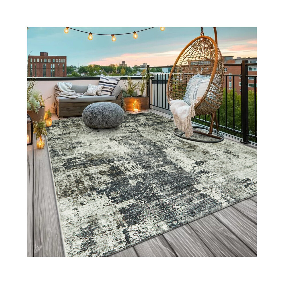 Enyhom Large Grey Outdoor Rug Carpets 180 x 270 cm, Waterproof Picnic Blanket, Plastic Straw Rug Durable Outdoor Patio Carpets for Lawn Pergola