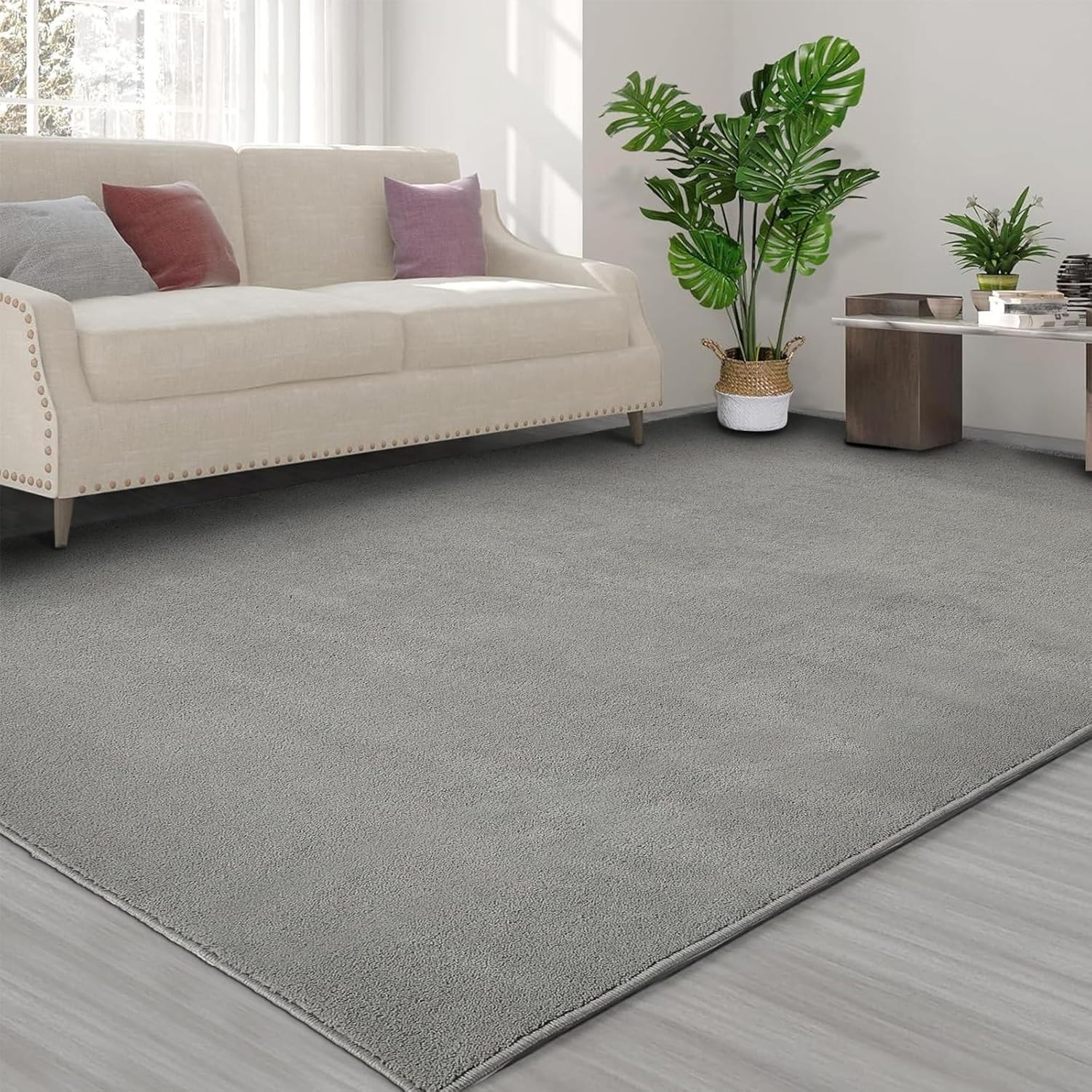 Rugs Living Room - 160x230cm Grey Large Rug for Living Room - Ultra Soft Fluffy Shaggy Rugs for Bedroom, Indoor Nursery Carpets for Kids Room Home Decor, Non Shedding, Anti-Slip Backing (Grey)