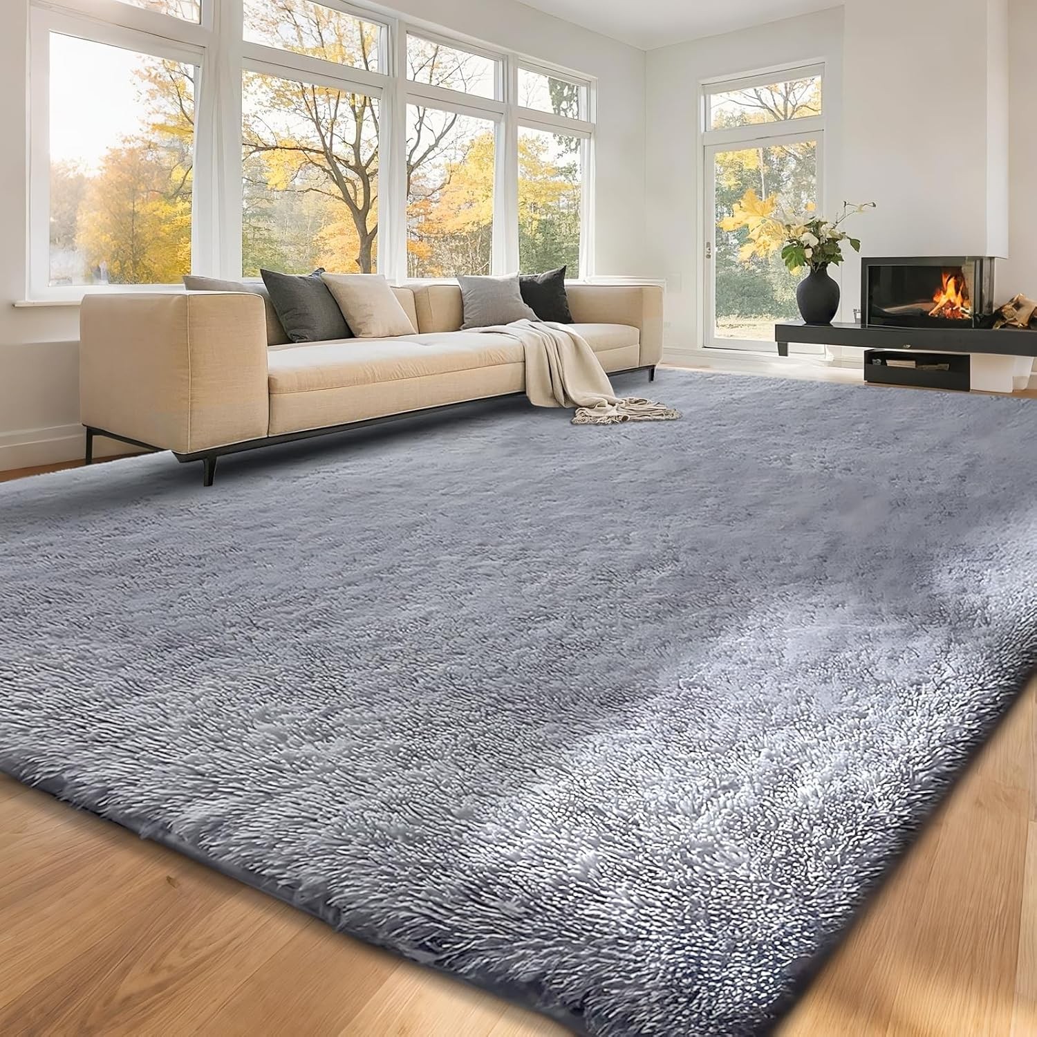 Rugs Living Room - 160x230cm Grey Large Rug for Living Room - Ultra Soft Fluffy