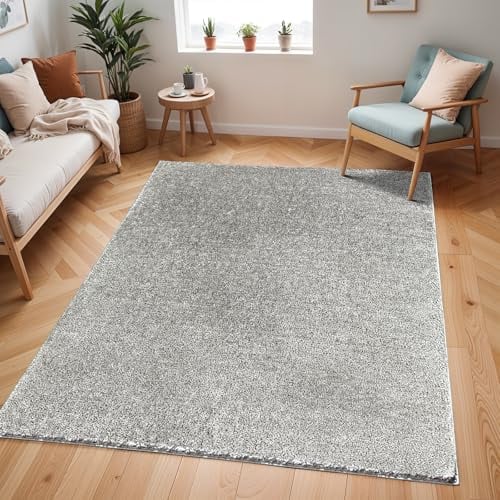 Topfinel Large Grey Rug 200x290 for Living Room, Faux Wool Short Pile Non-Slip