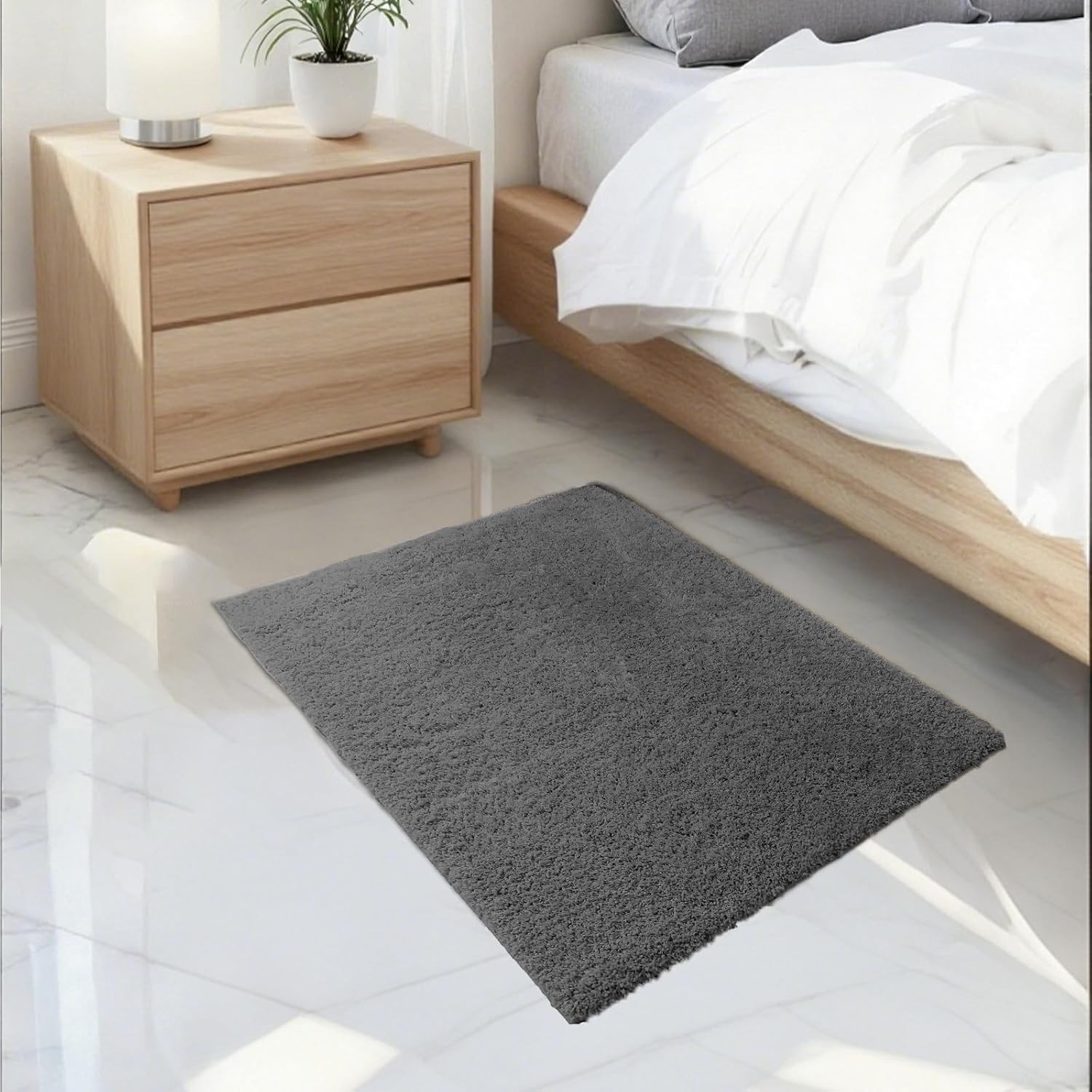 DINHEAROM Absorbent Diatom Ooze Anti-skid Floor Mat Non-slip Quick-dry Ground Cushion for Bathroom Bedroom Living Large Grey Moisture-resistant Rug with Comfortable Pressure-relief Surface
