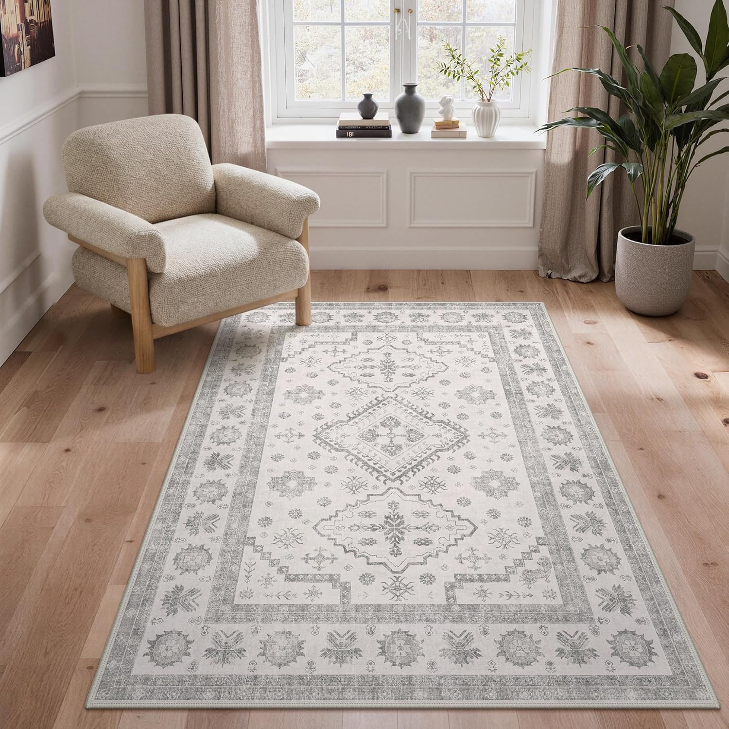GENIMO Rugs Living Room 120x170cm,Large Washable Grey Rug with Non-Slip Backing