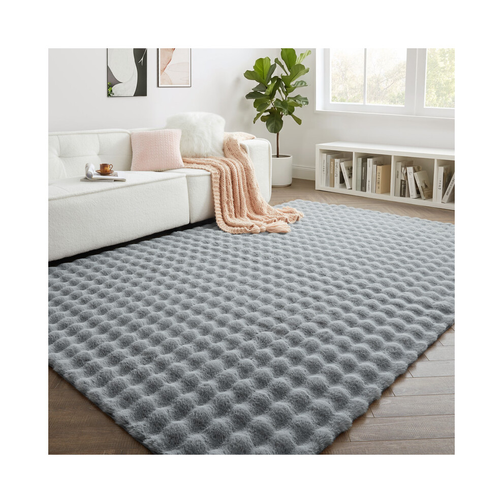 (200x290cm (Extra Large Rug), Grey) Bubble Rug-Thick Non Slip Ultra Soft Fluffy Faux Fur Carpet for Living Room Bedrooms UK