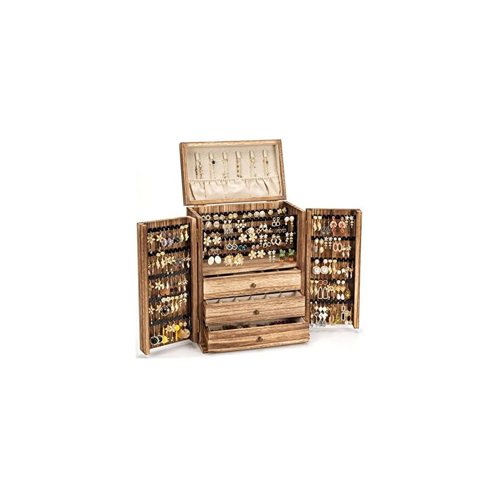 Jewelry Box Organizer, Large Wooden Jewelry Boxes for Women, Rustic Earring Jewelry Organizer for Necklace Earring Ring Bracelet, Gift for Her