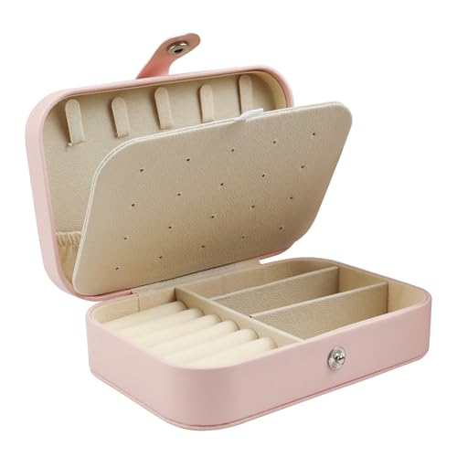 MultiValue Jewellery Box, Double Layer Leather Storage Organiser Large Capacity Boxes for Earrings Necklace Ring (Pink)
