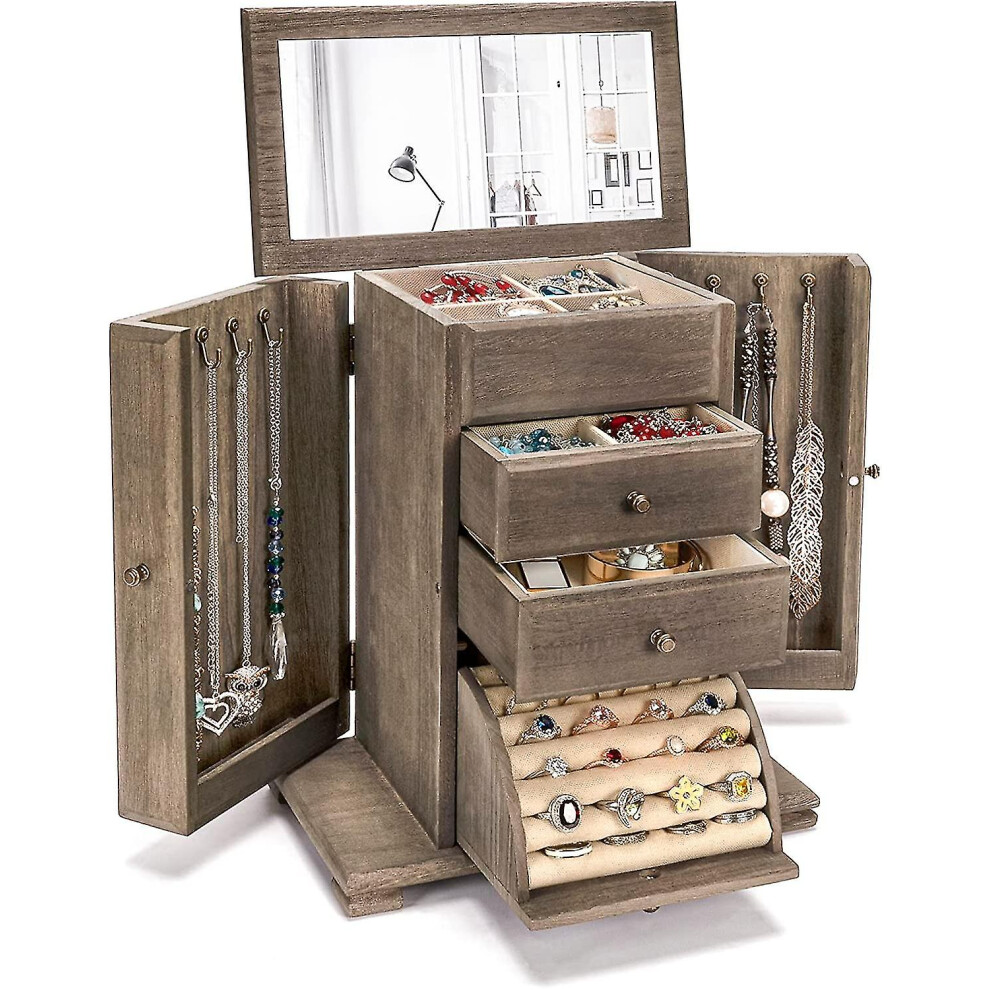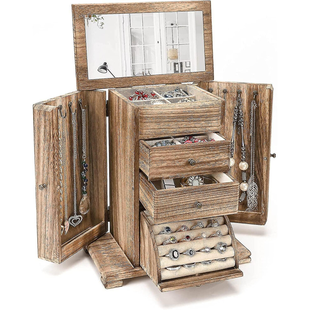 Jewellery Box for Women Girls, Rustic Wooden Large Jewelry Boxes & Organisers w