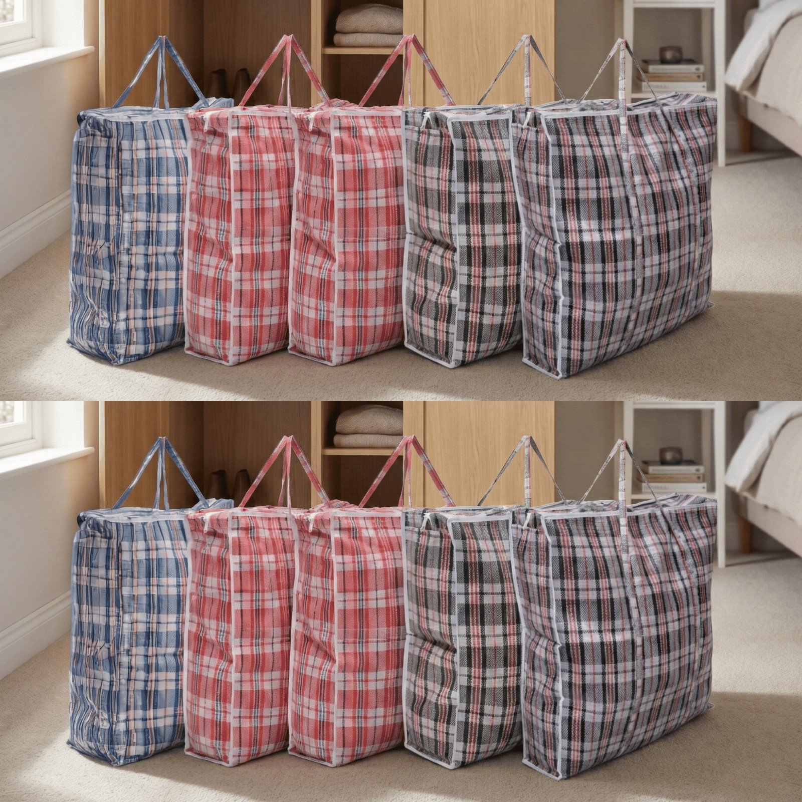 10 x LARGE LAUNDRY BAGS Zipped Reusable Large Strong Shopping Storage Bag Moving