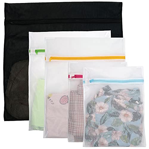 Casaphoria Bra Laundry Bags for Washing Machine,Large Travel Lingerie Laundry Bags for Dirty Clothes for Suitcase,Underwear Mesh Wash Bags for Delicates(5Pcs,Easy to Distinguish)