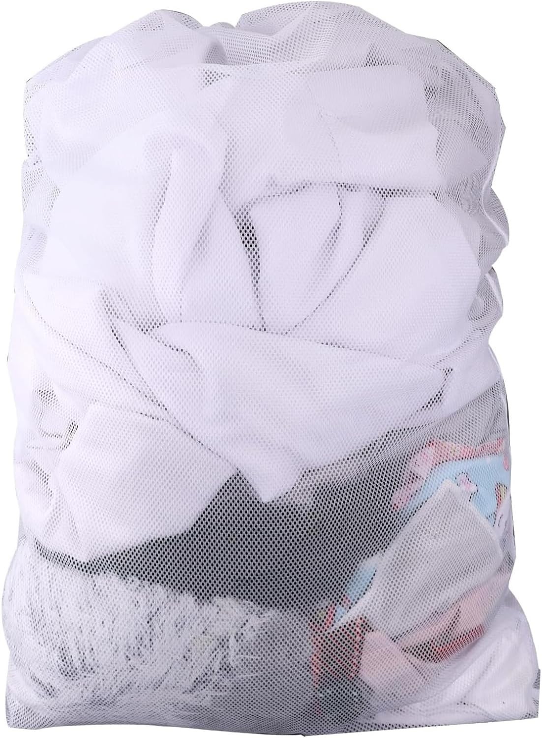 Large Mesh Laundry Bags 60x90cm White, Machine Washable with Secure Drawstring,