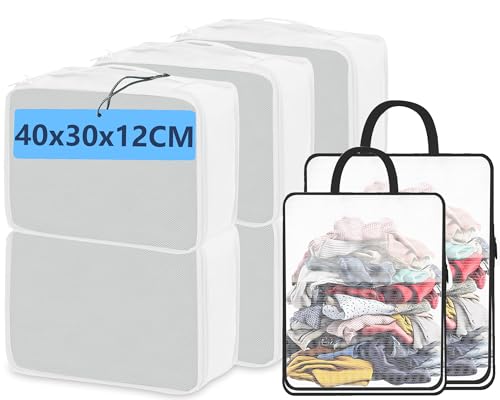 Large Packing Cubes with Laundry Bag, 8 PCS Travel Essentials include 6 Same Size Packing Cubes for Suitcases and 2 PCS Big Mesh Laundry Bags (6PCS Large White+2 Laundry Bags)