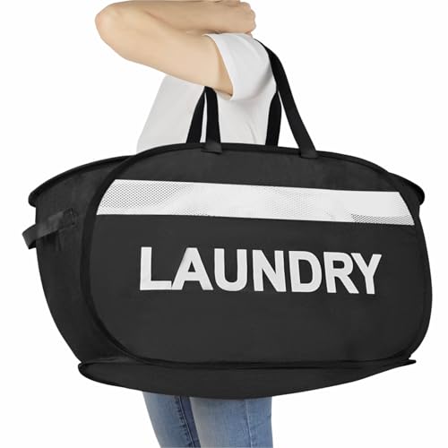 BOSNONA Large Collapsible Laundry Baskets Pop Up Laundry Hamper with Reinforced Handles Foldable Laundry Hamper for Home Laundry (Black Laundry)