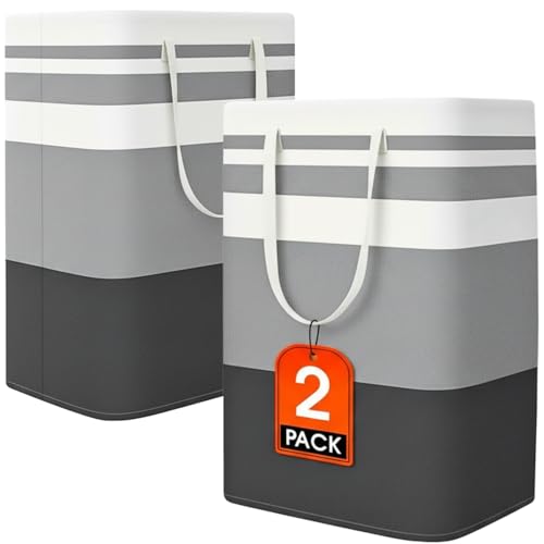 Nesrefyn 2 Pack Large Laundry Baskets – Waterproof Collapsible Laundry Hamper with Easy Carry Handles,Laundry Bags for Room, Bedroom, Bathroom, College Dorm, Storage and organization (Grey, 2 x 75L)
