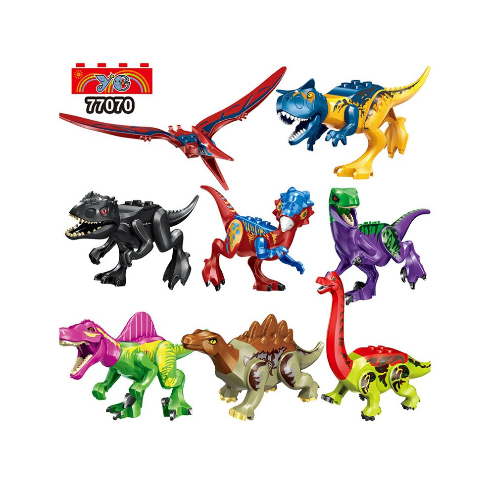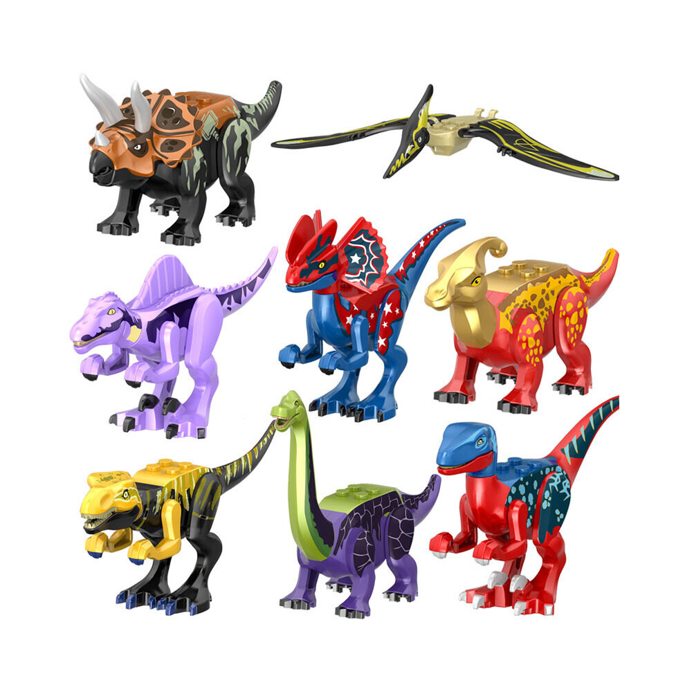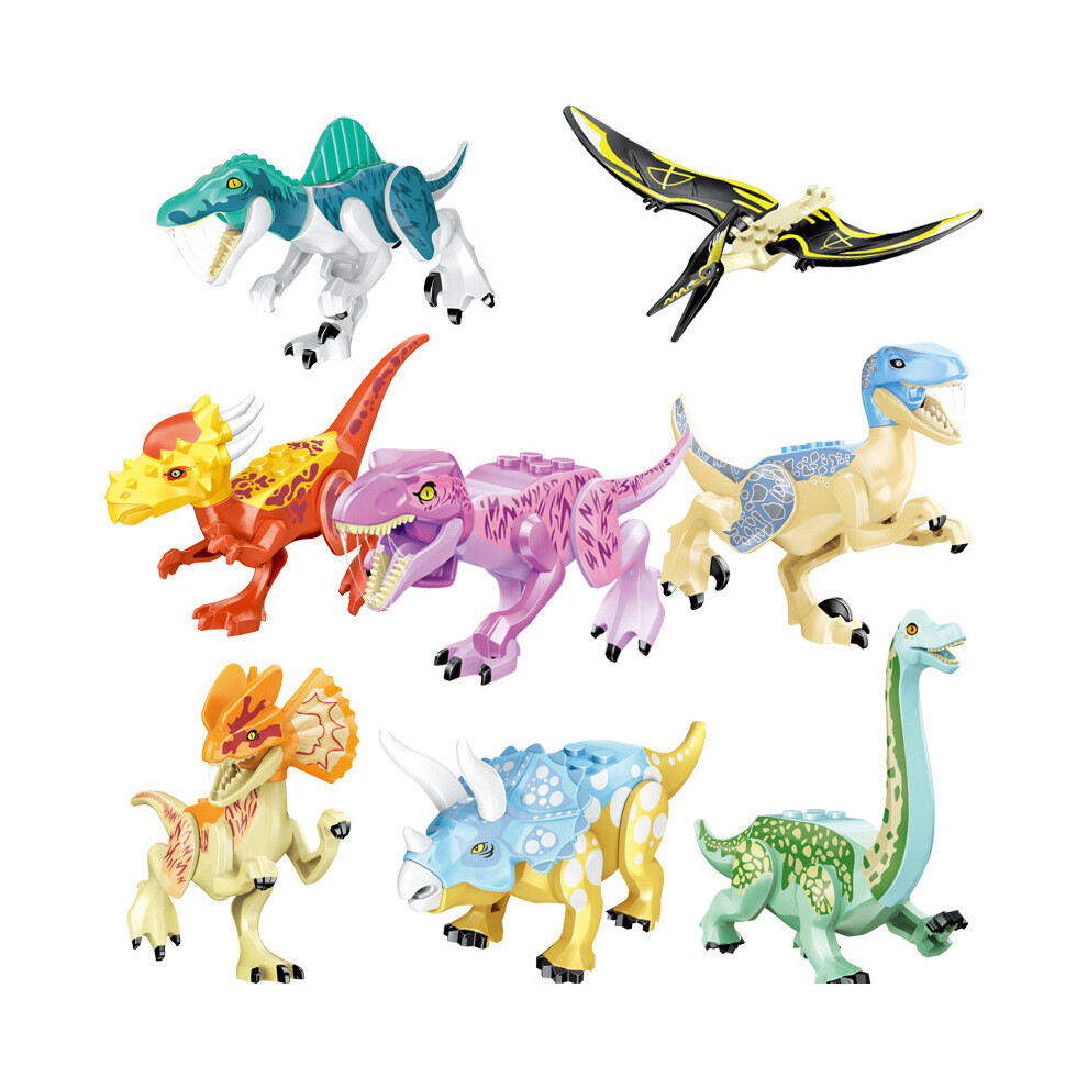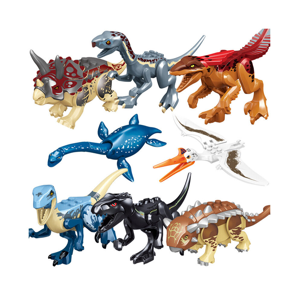 (Style H 8pcs) Large Dinosaur Figure Big Size Indominus T Rex Blocks Fit Lego Toys