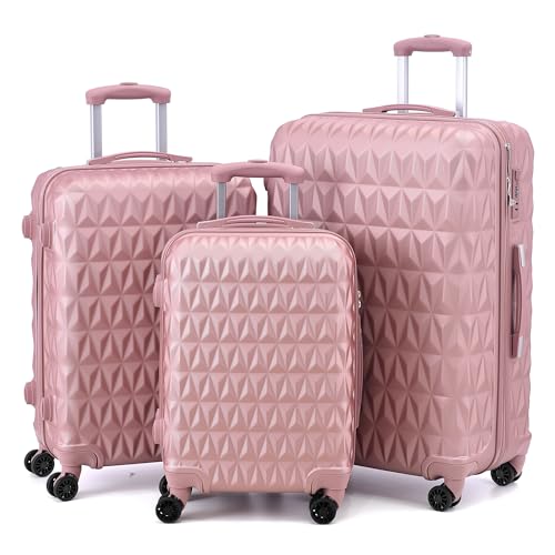 CMY Suitcase Large Lightweight Hard Shell ABS Large Suitcase 4 Dual Spinner Wheels Suitcase Hold Check in Luggage 3 Digit TSA Combination Lock (Rose Gold)